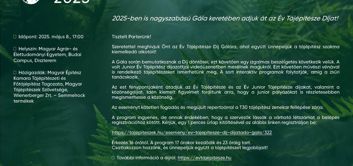 2025-ben is nagyszabású Gála keretében adjuk át az Év Tájépítésze Díjat!