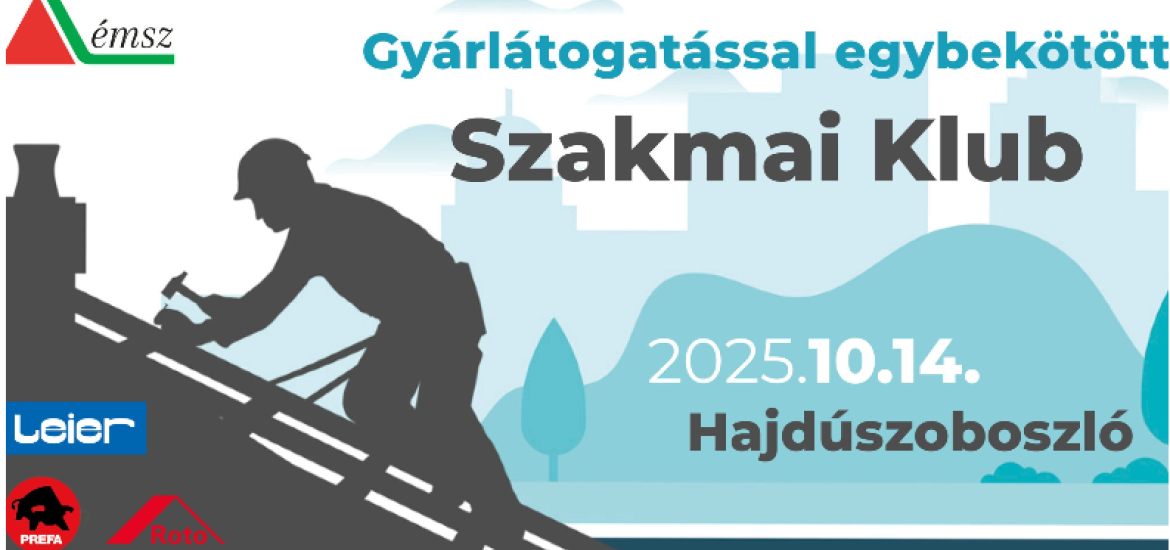 Szeretettel invitáljuk az október 14-én, Hajdúszoboszlón megrendezésre kerülő ÉMSZ Szakmai Klubra, melyet az ÉMSZ, a Leier Hungária Kft., a PREFA Hungária Kft. és a Roto Frank DST Hungary Kft. közösen szervez.