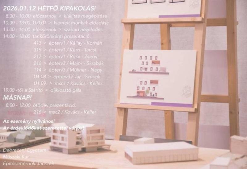 Rendezvények Mikolás100 - Hallgatói fotókiállítás - 2024. szeptember 30. 13 óra csilla küldte be 17 September 2024 időpontban Esemény dátuma 2024-09-30 Debrecen Kapcsolódó bejegyzéek 2026. január 09. Mester és tanítvány – Első kerekasztal beszélgetés Makovecz Imre kiállításához kapcsolódóan - 2026. január 10. 15.00-16.30 2026. január 09. SZAKMAI NAP A MŰCSARNOKBAN - 2026. január 10. 10.00-18.00 2026. január 09. Meghívó - DEMK - Kipakolás 2026. január 09. Meghívó Kulcsár Attila DLA építész könyvbemutatójára - 2026. február 13. - TIT Irodaház 2025. november 27. ÉMSZ díjmentes képzés Debrecenben 2025. december 09. 2025. november 19. Nyitó kurátori tárlatvezetés Jonathan Glanceyvel Makovecz Imre kiállításán - Műcsarnok - 2025. november 22. 15-17 óráig